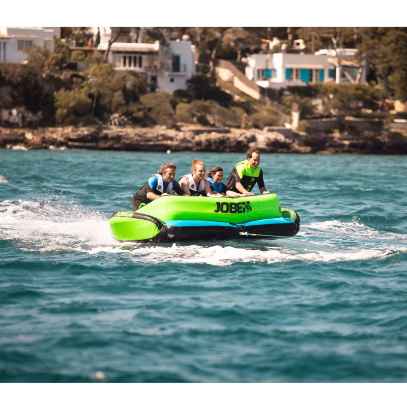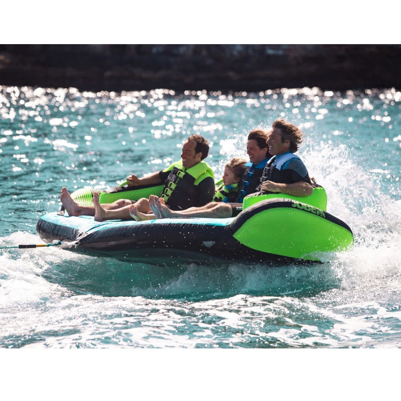 La bouĂ©e tractable Sonar est adaptĂ©e pour 4 personnes. Elle peut ĂȘtre tractĂ©e des deux sens, pour ĂȘtre soit assis en position fauteuil, ou sur les genoux !