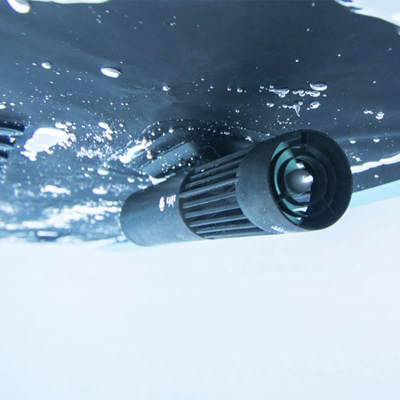 Une télécommande connectée et étanche (IP68) vous permettra de contrÎler le niveau de batterie et de gérer la vitesse du propulseur.